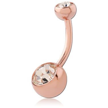ROSE GOLD PVD COATED TITANIUM INTERNALLY THREADED DOUBLE PREMIUM CRYSTAL JEWELED NAVEL BANANA