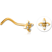GOLD PVD COATED SURGICAL STEEL JEWELED NOSE BONE - FLOWER