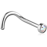 SURGICAL STEEL JEWELED CURVED NOSE STUD WITH GLUED STONE