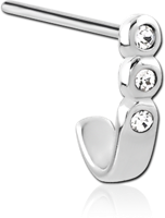 SURGICAL STEEL JEWELED LARGE LEFT CURVE NOSE STUD