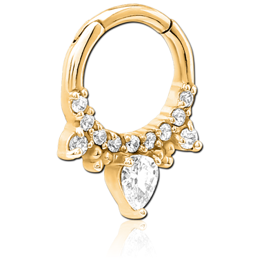 GOLD PVD COATED SURGICAL STEEL JEWELED HINGED SEPTUM CLICKER RING