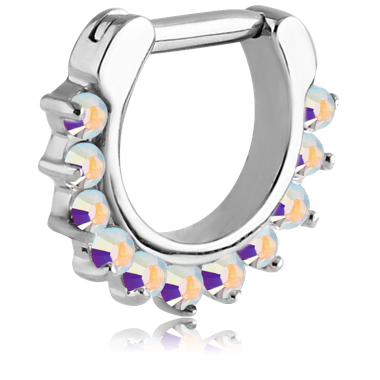 SURGICAL STEEL ROUND PRONG SET JEWELED HINGED SEPTUM CLICKER RING