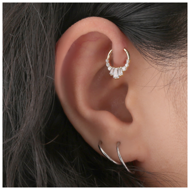 14K GOLD HINGE SEGMENT RING BAGUETTE CZ FAN | 14SH17