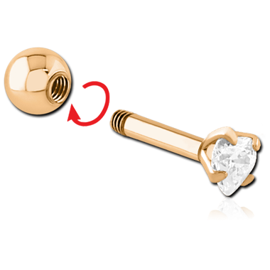 GOLD PVD COATED SURGICAL STEEL HEART PRONG SET JEWELED TRAGUS MICRO BARBELL
