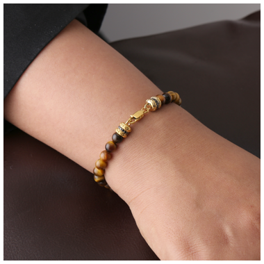 GOLD PVD COATED SURGICAL STEEL ELLASTIC BRACELET WITH SNOWFLAKE STONE BEADS