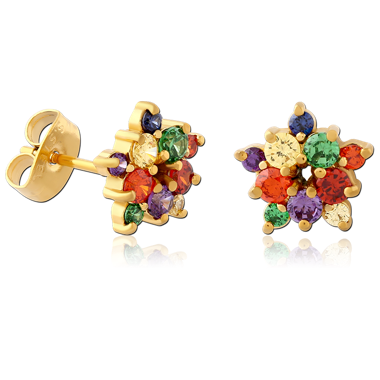 GOLD PVD COATED SURGICAL STEEL JEWELED EAR STUDS PAIR - FLOWER